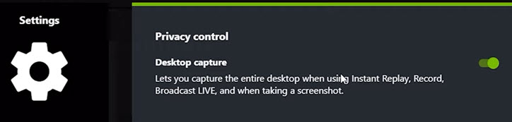 If you haven't toggle it on, you may be prompted with an alter saying that you need to use a supported game. After enabling the Desktop capture option in the Privacy control, you will be able to record the desktop.