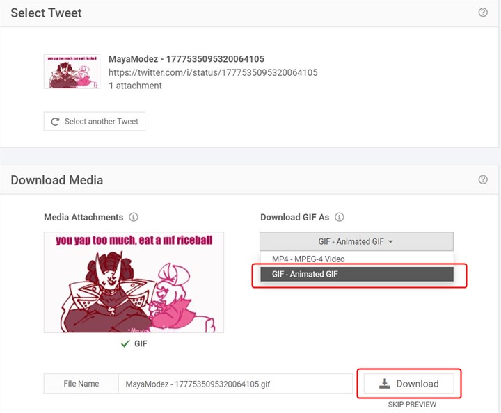 Step 2. Set the downloaded file as GIF or video as you need. Click the Download button to save a GIF from Twitter online.