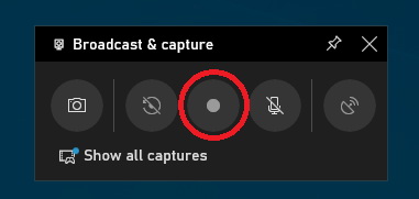 Step 3. Click the white circle button, which is located under the Broadcast & Capture widget, to start recording your HP screen, or just simply press WIN +Alt + G keys to do it. Then the button would become red.
