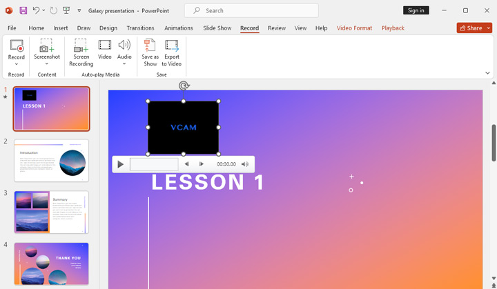 Step 8. The recorded videos will be embedded in all the slides you opened during the recording session. You can reposition the video window within each slide by simply dragging and dropping it around.