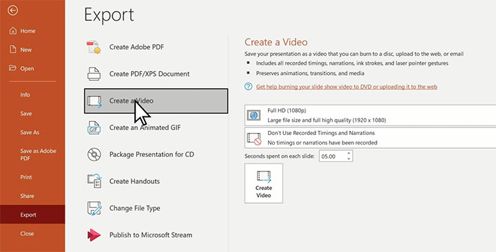 Step 10. Hit Create Video to enable PowerPoint to start exporting your recording as an MP4 video.