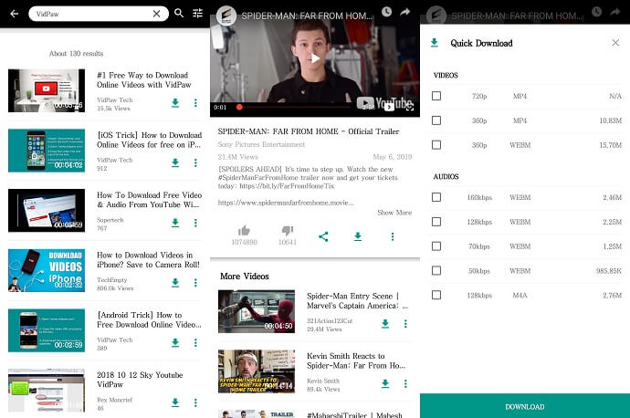 Recording audio from YouTube on an iPhone/Android device is a less complex process compared to doing so on a desktop, as it only requires utilizing a third-party YouTube audio recorder app. While there is a wide range of apps available for this purpose, we have selected the best option in terms of its ease of use and seamless performance – VidPaw. The procedure of capturing audio from YouTube on iPhone and Android via VidPaw is a little bit different, and here are the detailed steps: