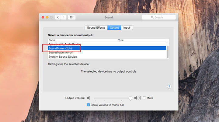 Go to System Preferences on your Mac, click Sound > Output and select Soundflower (2ch) as the output device.