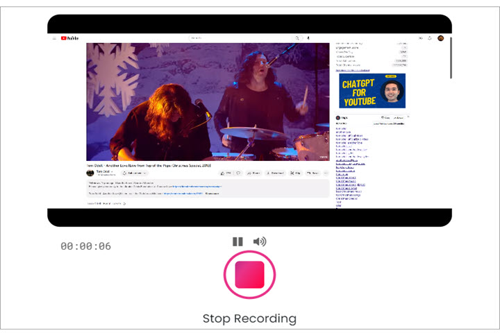 Step 3. Back to the live stream on YouTube. Now just stay in the video until you want to stop recording.