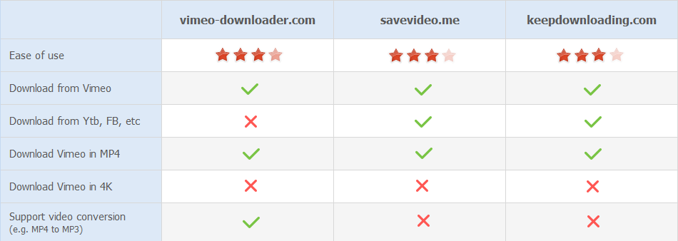 Most people prefer online video downloader websites for the convenience without any program installed on their devices. True, online service saves a lot of troubles and there is a bunch of them. But which site is trustworthy? Seemingly, they all do the same thing, then which online Vimeo video downloader should you use? Check our analysis below of three online video downloaders for Vimeo.