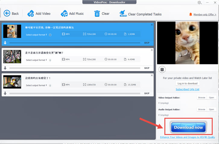 Step 4. Repeat the process above to paste more links to queue the tasks. Then hit the Download Now button to download videos from Xiaohongshu in batch.