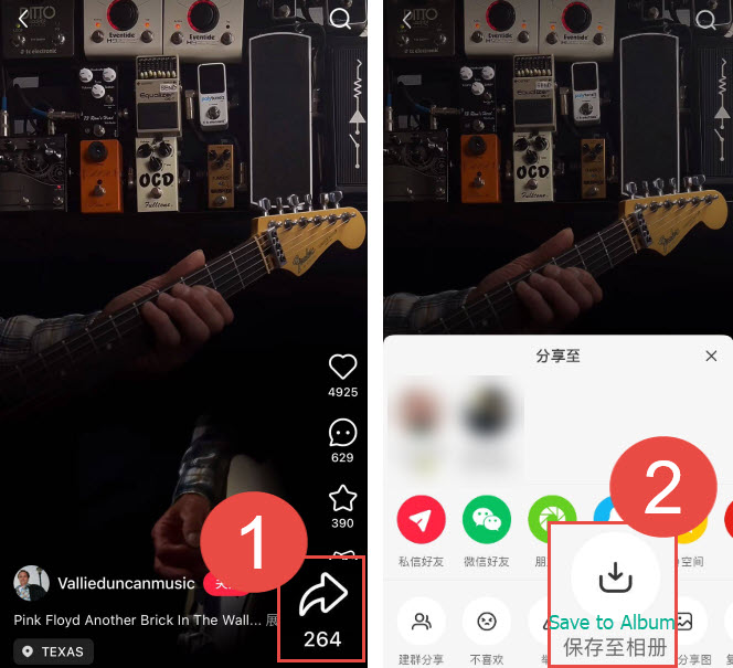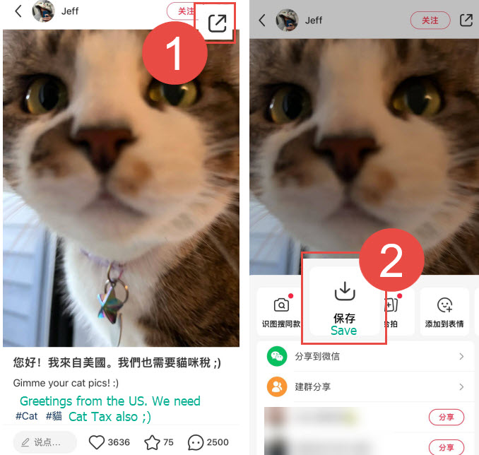 Tips: If you are trying to save pictures from Xiaohongshu, the share button is at the top right corner of the post. Then you can hit the Download icon.