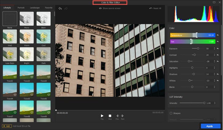 Click the photos you wan to adjust color and find Color & Filter Editor in the right panel. You can adjust the color temperature, tint, exposure, contrast, saturation, highlights, shadows and more.