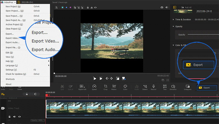 Watch video tutorial on how to export project in VideoProc Vlogger, or read text instructions below.