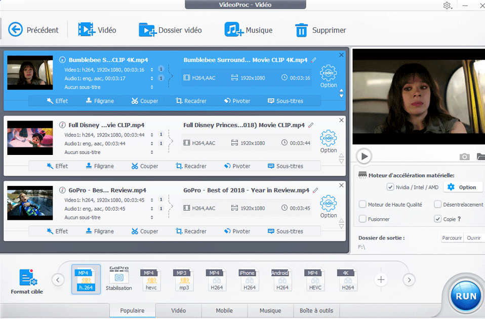VideoProc Converter AI appuie toute mesure de tournage ou autre action GoPro cams. Il crée stabilisé 4K/vélo/planche à voile des clips, des séquences de grande rétrécit Whatsapp. La boîte à outils de retouche intégrés contribue à faire un mousseux de qualité optimisés avec vlog et rationnelle pour le partage en ligne de taille.