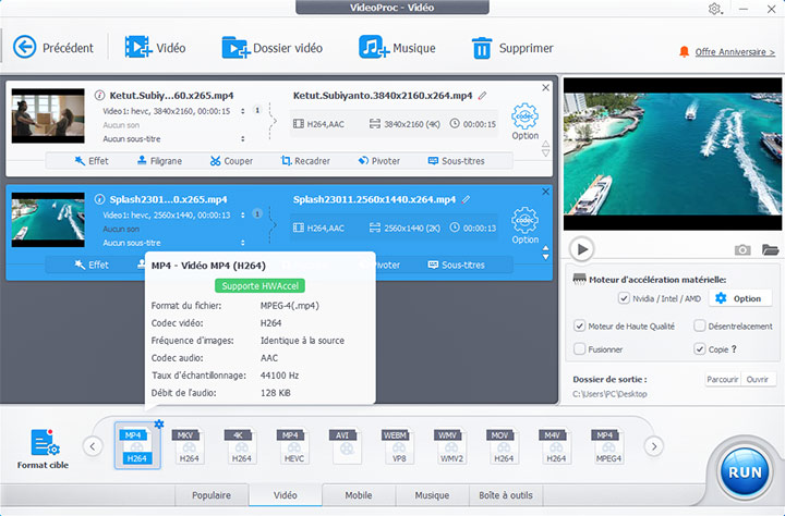 - Conversion HEVC par lots rapide avec l'Accélération matérielle de niveau 3