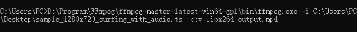 Étape 3. Tapez la commande suivante. ffmpeg -i yourvideoname.ts -c:v libx264 outputfilename.mp4