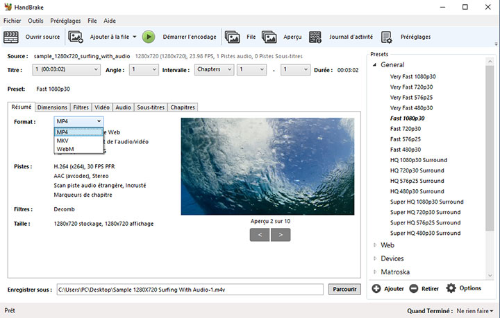 - 100+ profils MP4 prédéfinis pour différents appareils et plateformes