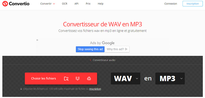 Veuillez suivre les étapes ci-dessous pour convertir WAV en MP3 en ligne avec Convertio.
