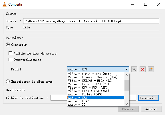 VLC extraire MP3 d'une vidéo
