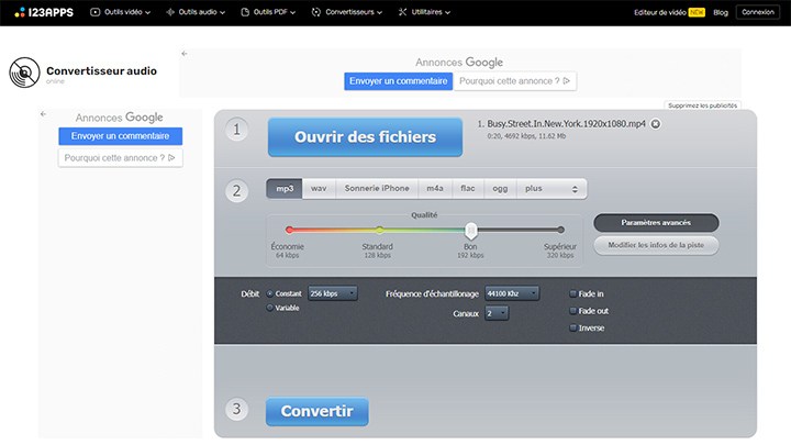Extraire MP3 d'une vidéo en ligne est également une bonne idée pour des besoins ponctuels. Ces convertisseurs audio fonctionnent directement dans votre navigateur web. Ils vous permettent d'extraire audio d'une vidéo sans avoir à télécharger ou installer de logiciel. Mais en même temps, vous devrez peut-être également supporter le processus de téléchargement qui prend du temps. Suivez les étapes ci-dessous pour extraire le son d'une vidéo en ligne et l'enregistrer au format MP3.