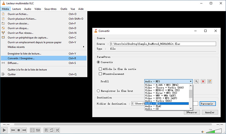VLC est un lecteur multimédia open source très populaire. Mais ce lecteur multimédia sophistiqué peut également servir de convertisseur FLAC en MP3 gratuit. Ce logiciel léger mais polyvalent vous permet de convertir FLAC en MP3, AAC, Vorbis, Opus et autres codecs courants. Veuillez suivre les étapes ci-dessous pour convertir FLAC en MP3 avec VLC.