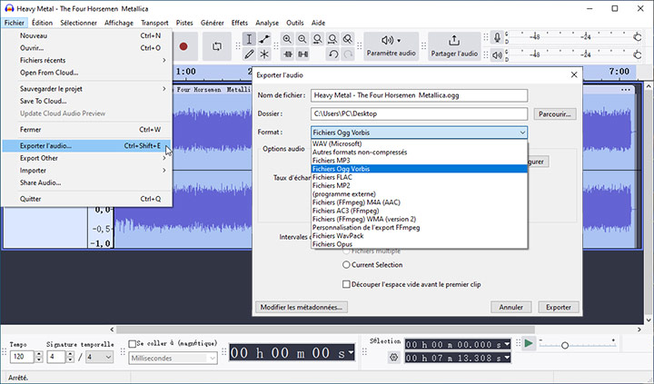 - Allez dans le menu Fichier et sélectionnez Exporter l'audio.