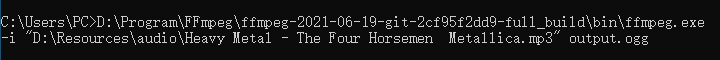 ffmpeg -i fichier.mp3 fichier.ogg - Cliquez sur la touche Entrée de votre clavier pour exécuter la commande.