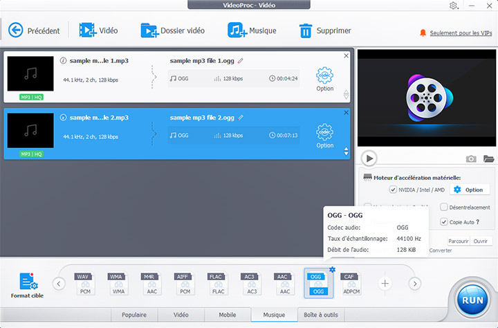 L'un des atouts de VideoProc est sa capacité à traiter des conversions par lot. Cela vous permet de convertir plusieurs fichiers MP3 en OGG simultanément, ce qui vous fait gagner du temps.