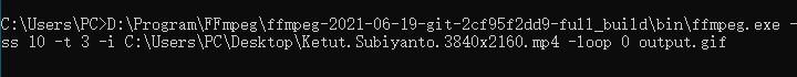 Étape 4. Utilisez la commande suivante : ffmpeg -ss 10 -t 3 -i input.mp4 -loop 0 output.gif