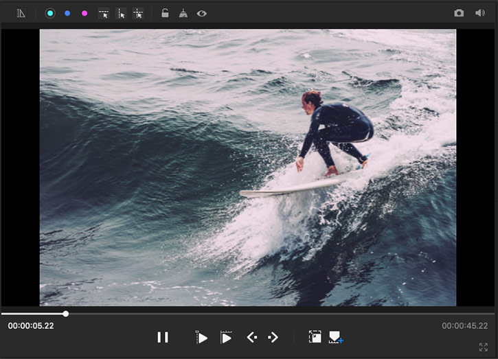 The preview area is designed with many handy tools, for instance, frame by frame preview, full screen preview, preview with marks, etc. For more details, please visit the preview panel intro page.