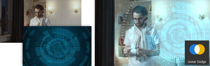 4. Add a futuristic effects video to the overlay track, and apply the Linear Dodge as the blend mode.
