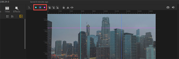 • Hit the Add Horizontal Guide or the Add Vertical Guide icon on to top menu bar of the preview window. A guide will appear when you move the cursor over the canvas. Click your mouse to add the guide.