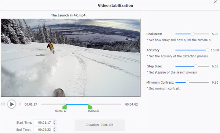 VideoProc is equipped with basic editing features like cut, crop, split, merge and convert GoPro videos. You can also add titles, subtitles or watermarks to your footage. Adding filters and adjusting brightness/contrast are also supported.