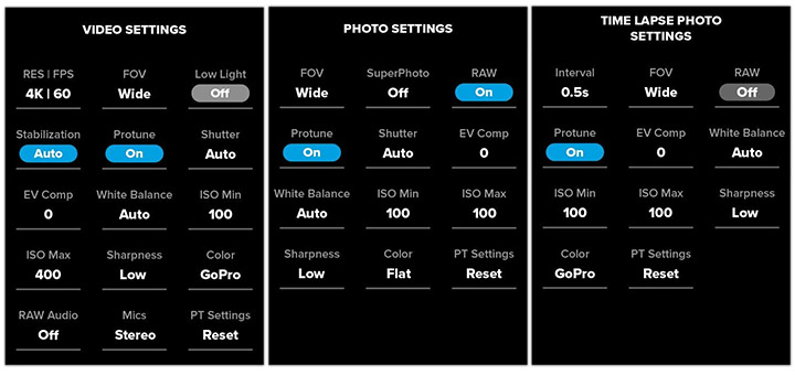 Solution 6. Record in a Lower Resolution & Turn Off Protune