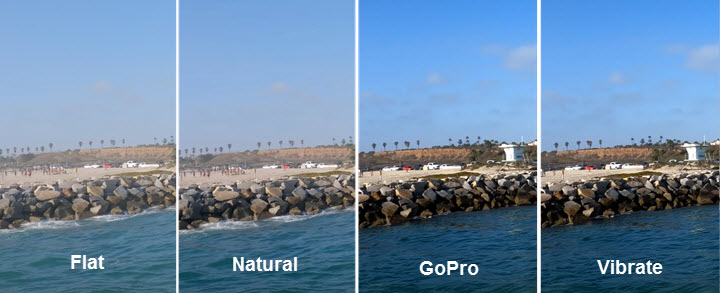 Many users complain that the default color mode and Flat mode need much color correction and grading in post-editing. This time, GoPro retains the Flat mode for post-production, then adds Vibrate for the color-saturated outcome and Natural for true-to-life.