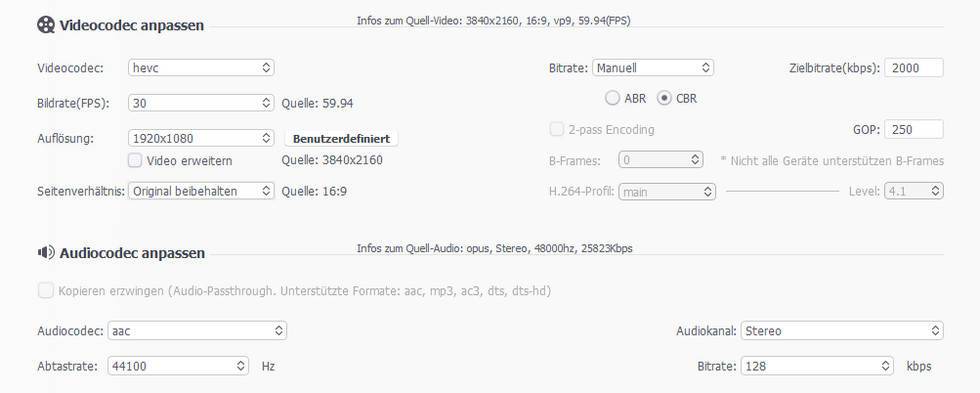 1080p60, Weites oder Linear Sichtfeld, AVC