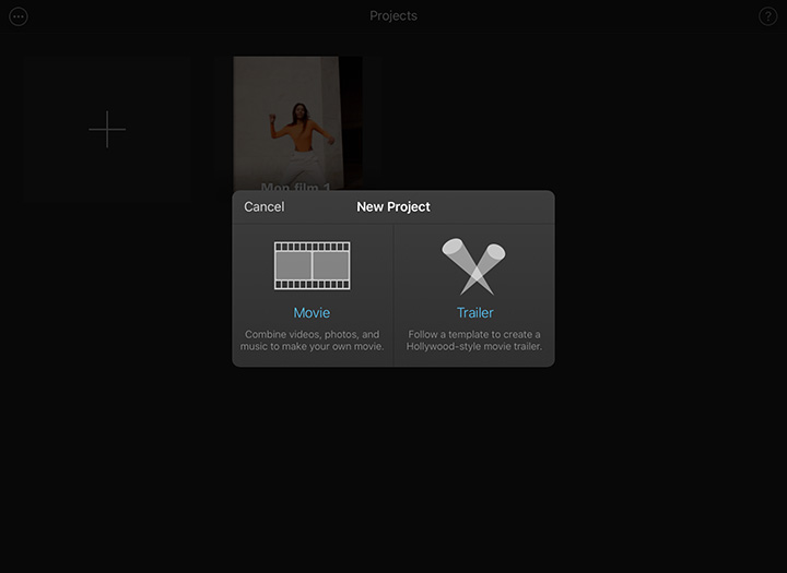 Open iMovie and click Create Project > Movie to create a new project. Then, add your video to the timeline.