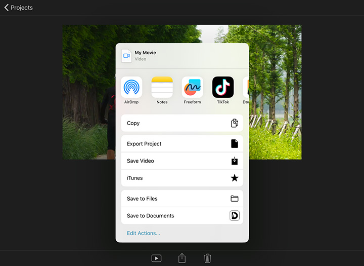 Click Done, then the Share icon > Save video to save the video.