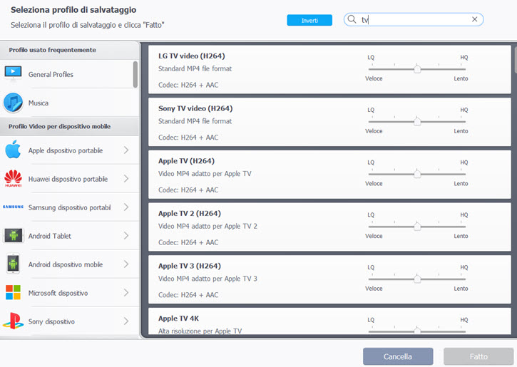 - Apple TV supporta video H.264 in formati contenitore .m4v, .mp4 e .mov.