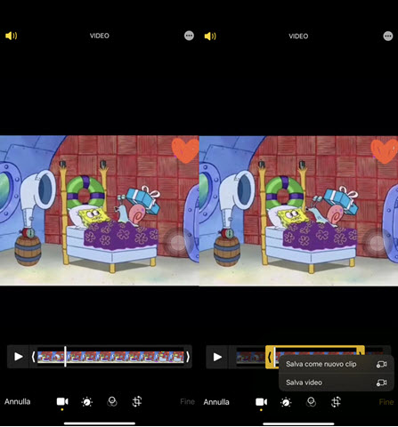 Step 3. Clicca sul pulsante Fine per salvare le clip scelte. Ma la Apple è… premurosa! Vedrai spuntare altre due opzioni, Salva Video e Salva Video Come Nuova Clip. Ti consigliamo vivamente di scegliere Salva Video Come Nuova Clip, in modo da poter mantenere sia la clip originale che quella modificata.