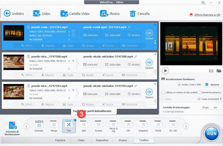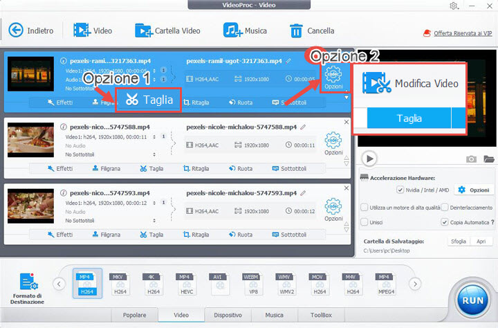 Step 3. Utilizza facilmente lo strumento di Tagliare in VideoProc.