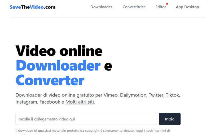 SaveTheVideo non è un convertitore da MKV ad AVI che permette di convertire i file da disco locale. Tuttavia, si assicura comunque un posto nella nostra lista per la sua versatilità. SaveTheVideo è in grado di analizzare i link dei video da oltre 1000 siti online. Per quanto riguarda il formato di output supporta: MKV, FLV, MP4 e molti altri. Permette anche di tagliare il video in più clip. Garantisce inoltre pretende la sicurezza e la privacy dei file.