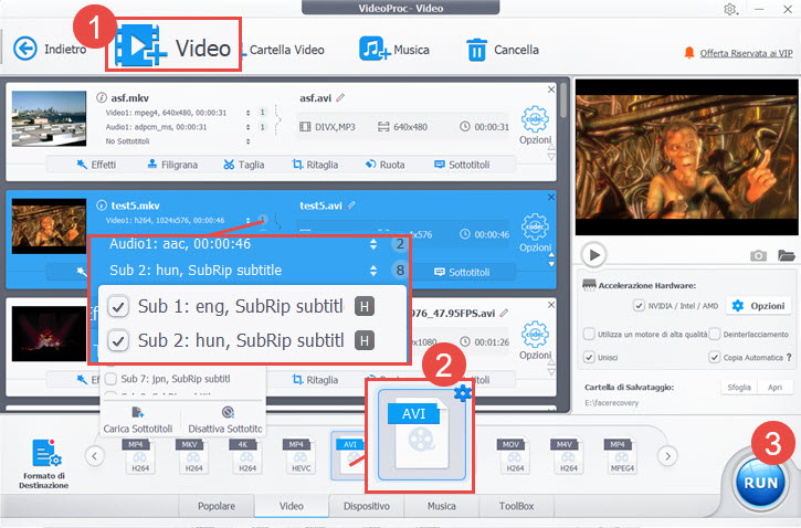Alcuni film in formato MKV includono i sottotitoli. Durante la conversione da MKV a AVI, hai l'opzione di preservare i sottotitoli utilizzando VideoProc Converter AI.