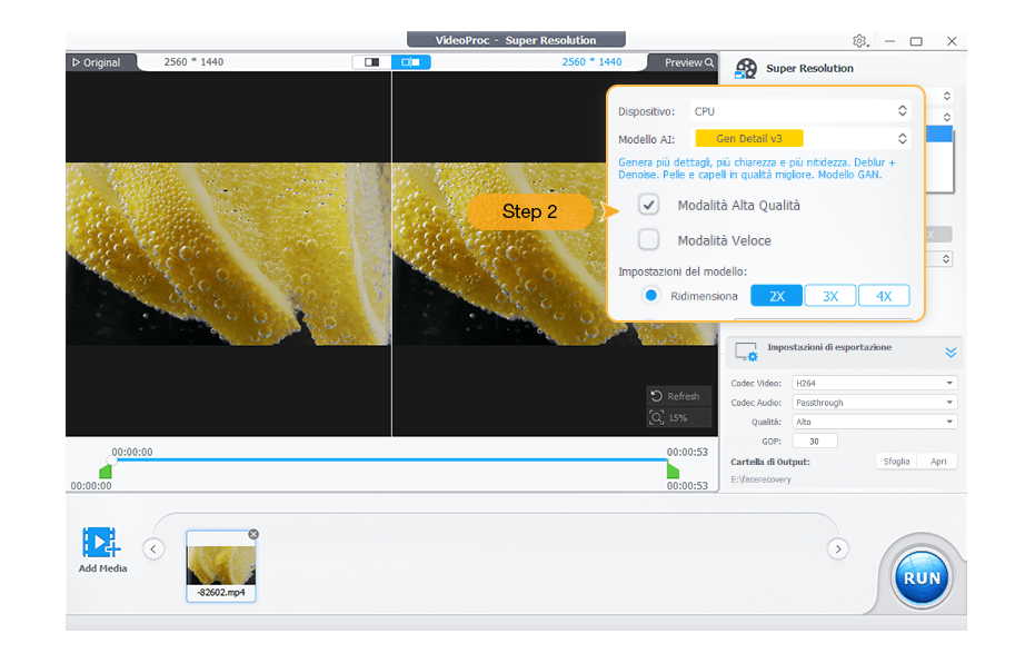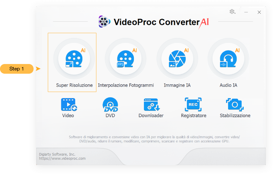 VideoProc Converter AI- Upscaling dei video compressi alla risoluzione HD/4K.