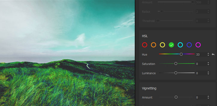 • Luminance: Also named lightness, it alters the brightness of the chosen color range.