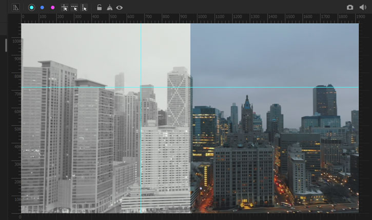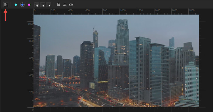 • Hit the Add Horizontal Guide or the Add Vertical Guide icon on to top menu bar of the preview window. A guide will appear when you move the cursor over the canvas. Click your mouse to add the guide.