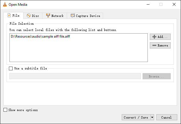 Step 2. Load your AIFF audio using the Add button. Then click the Convert / Save button.
