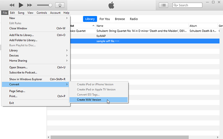 Below are the detailed steps to convert AIFF to WAV in iTunes.