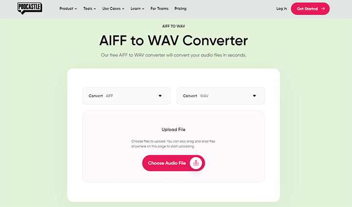 The AIFF to WAV online converter like Podcastle is also a good choice if you don't want to install any software. It supports eight common audio formats, including AIFF and WAV. You just need to upload the audio file, and Podcastle will convert it to WAV in its cloud server. Aside from the time-consuming upload-download process and the file size limitation (50 MB), it works like a charm.