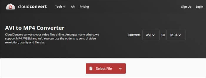 Step 1. Open on the home page of CloudConvert AVI to MP4 converter on your browser.