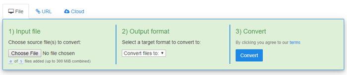 FreeFileConvert is a useful online AVI to MP4 converter that is widely used for converting small AVI clips to MP4 videos. It allows you to put 5 files per time with a total size no larger than 300MB. The interface is filled with ads but is straightforward enough for beginner users to use. Sadly, it doesn't allow you to apply advanced settings for the output MP4 properties, and the support of advanced codecs like H.265/HEVC, VP8, and VP9 are absent.
