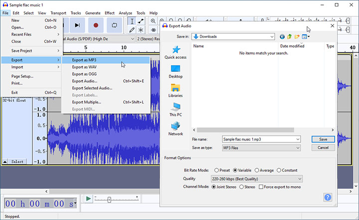 Audacity is popular among many audio enthusiasts and podcasters, although there is still debate about whether it's a DAW. It's a free and open-source audio editing and recording software. Apart from that, it allows users to change or customize the output file format, including MP3. The most striking difference is its waveform display. So compared with other free MP3 converters on this list, Audacity provides more editing features like normalizing and fading.