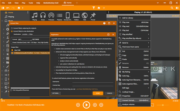 MediaMonkey is a popular audio player for Windows, but it also serves as the best free MP3 converter for Windows 10. In addition to organizing and managing media files in your library, this software can convert them to various formats if necessary, including MP3, OGG, WAV, FLAC, etc.