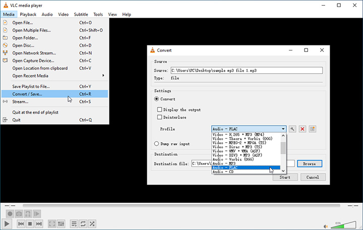 VLC Media Player is a very popular multimedia player. In addition to playing most multimedia files, VLC also provides features like editing video files and format conversion. It has some output presets for audio, including OGG, MP3, FLAC, WAV, etc. This makes it an audio to MP3 converter program for users who need to convert their MP3 files to other formats or vice versa. You can also set bitrate, channels, and sample rate. But VLC does not provide options to edit metadata.